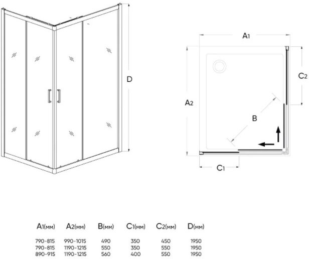 Тип кабины - Душевое ограждение для углового монтажа (форма - прямоугольник)