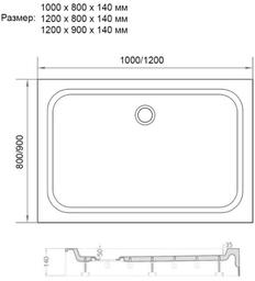 Размеры (ДхШхВ): 100х80х14 см