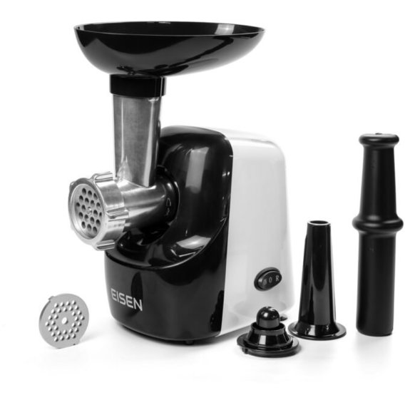 • Оснащение Прорезиненные ножки, Реверс, Насадка для колбасок, Металлический шнек, Насадка «кеббе», 2 решетки для фарша
