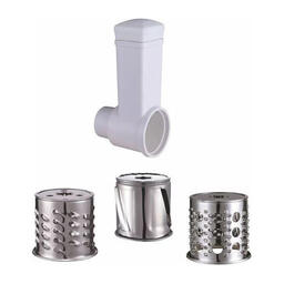 - Оснащение Шинковка, Терка, Реверс, Насадка для томатов и ягод, Насадка для колбасок, Насадка для дерунов, Насадка «кеббе», 3 решетки для фарша