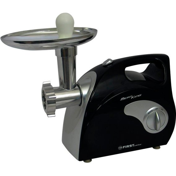 - Оснащение Прорезиненные ножки, Насадка для колбасок, Насадка «кеббе», Металлический шнек, 3 решетки для фарша