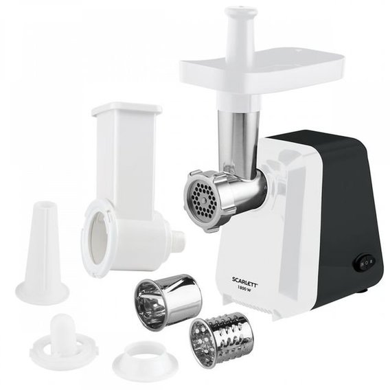 - Оснащение Шинковка, Терка, Реверс, Нож из нержавеющей стали, Насадка для колбасок, Насадка «кеббе»
