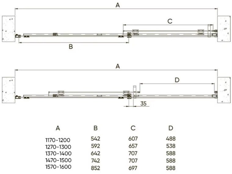 душевая дверь veconi vianno vn-70 130x195 прозрачные стекла / профиль черный