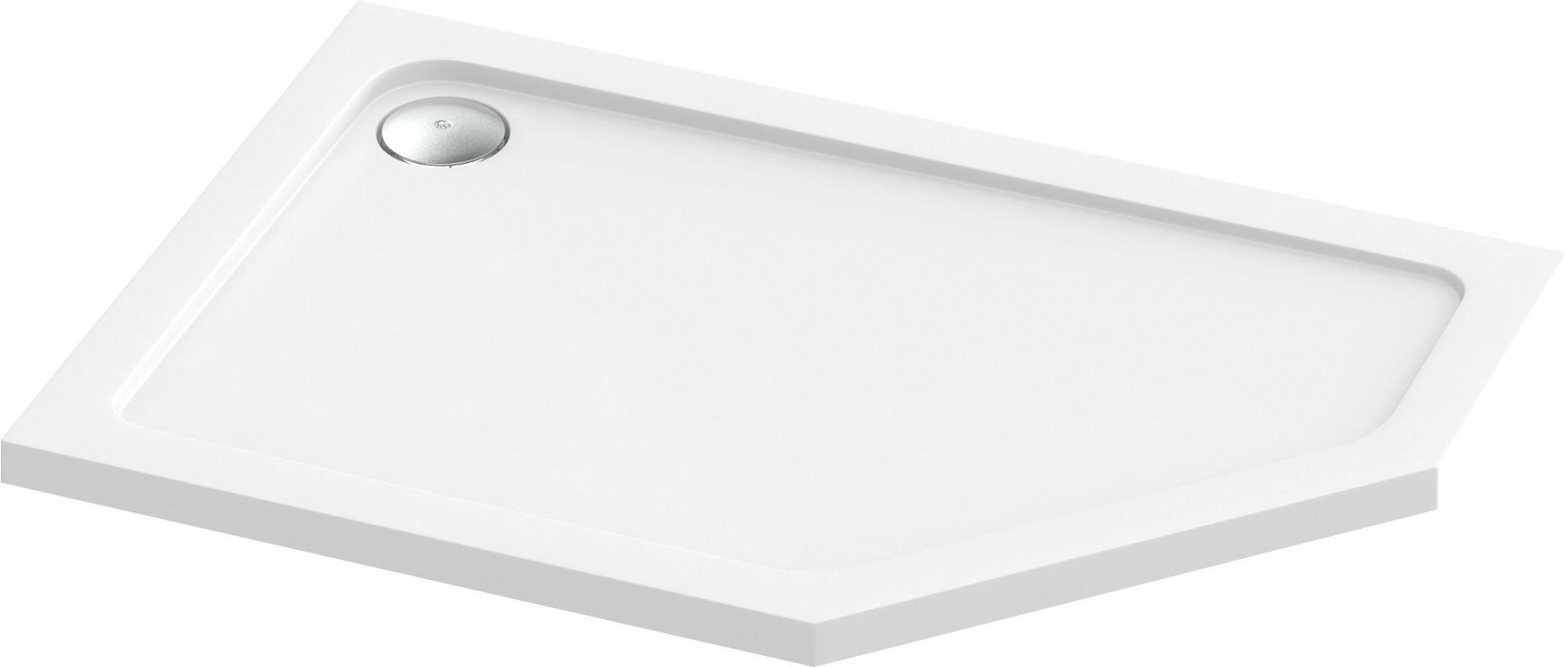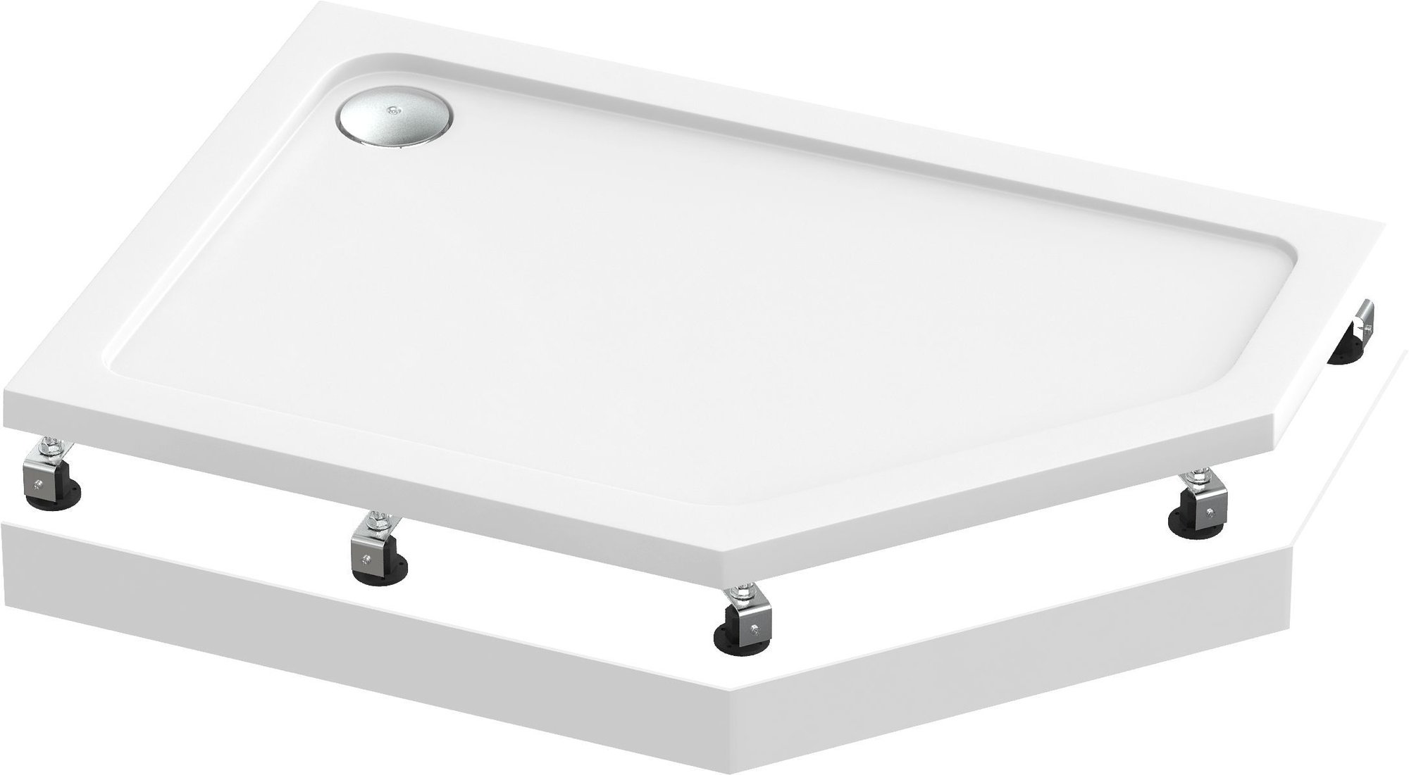 Низкий акриловый поддон пятиугольной формы высотой 5.5 см. Отдельно приобретаются сифон, ножки и экран на магнитной застежке. Максимальная высота при установке на ножки - 15 см.