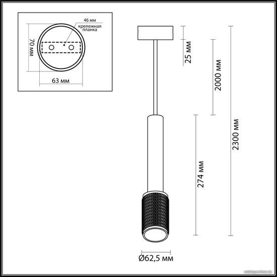 - Расположение потолочное