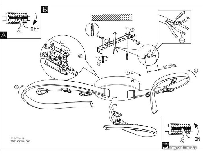 - Цвет плафонов, абажура белый, прозрачный