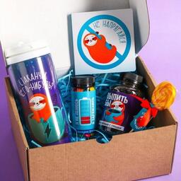 Подарочный набор "Пофигин"чай 50 г., драже 80 г., шоколад 20 г., термостакан 350 мл., леденец 15 г.,
