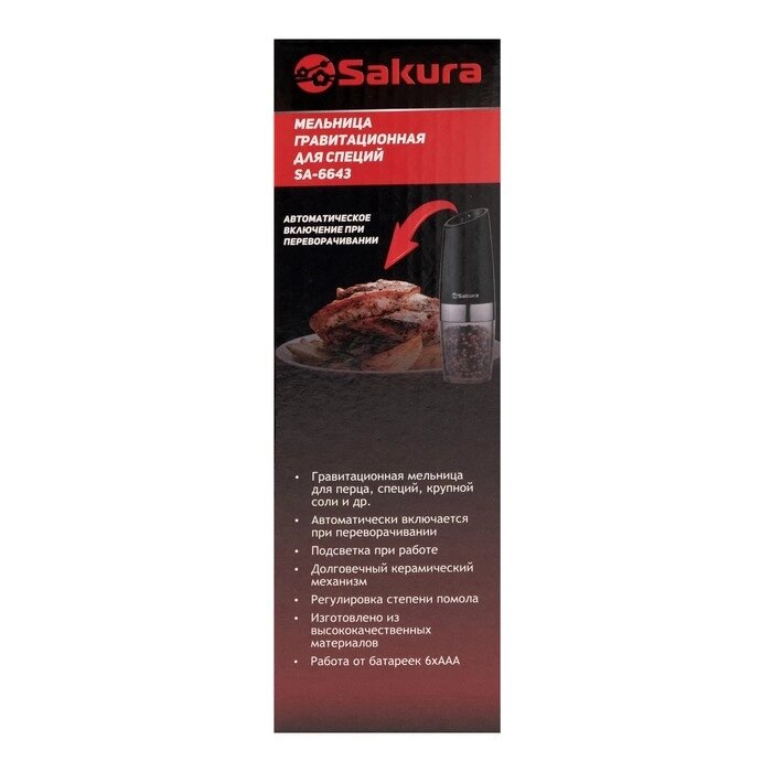 Мельница электрическая Sakura SA-6643R, подсветка, красная