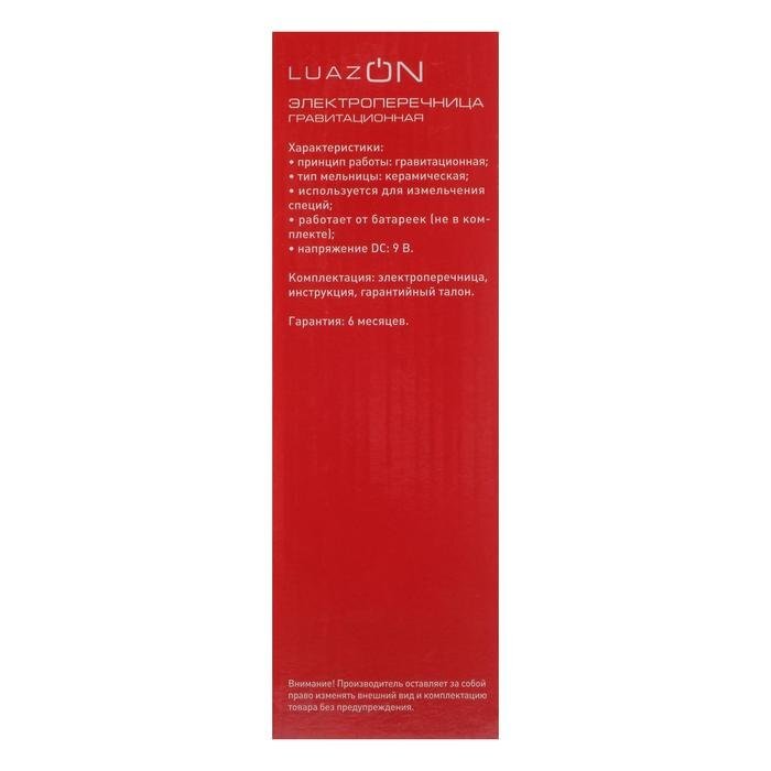 Мельница электрическая LuazON LET-003, гравитационная, пластик, от батареек, черная