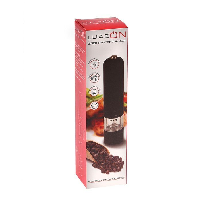 Мельница электрическая LuazON LET-002, металл, от батареек, серебристая