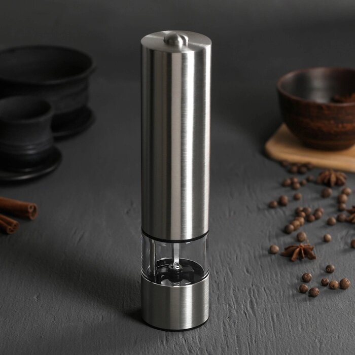 Мельница для специй электрическая 22 см, нержавеющая сталь, акрил