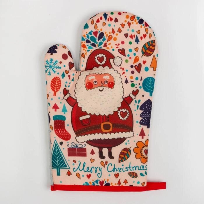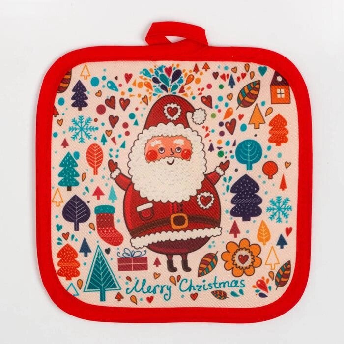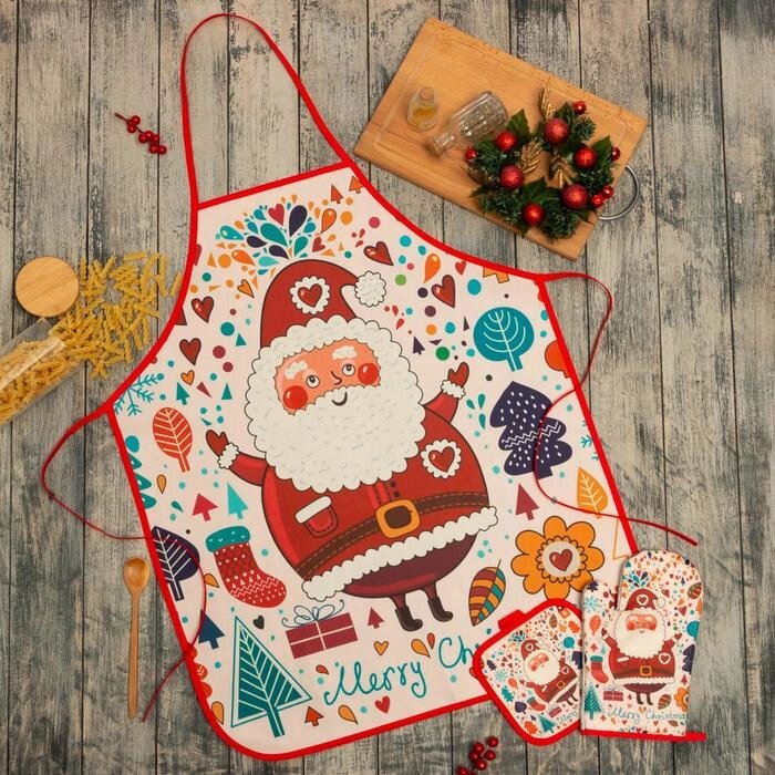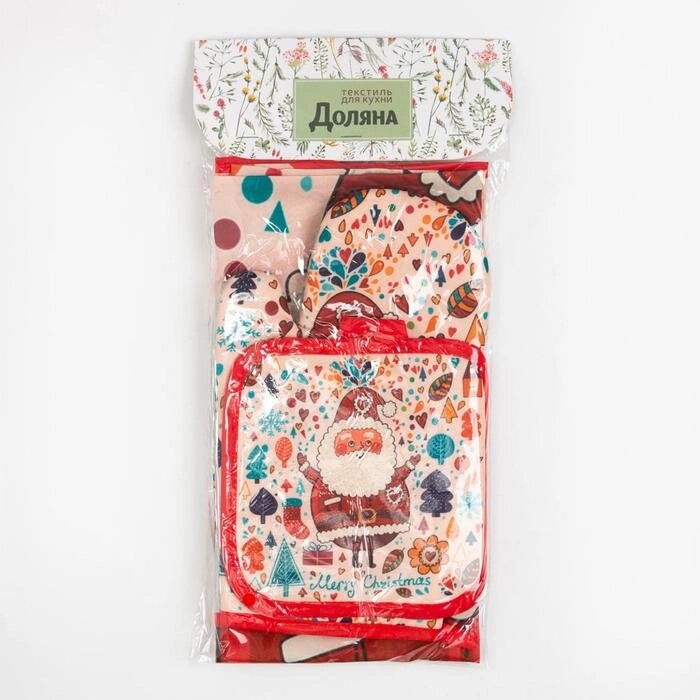 Кухонный набор Доляна"Санта", прихватка 17*17см, варежка 26*16см, фартук 60*80 см 100% п/э