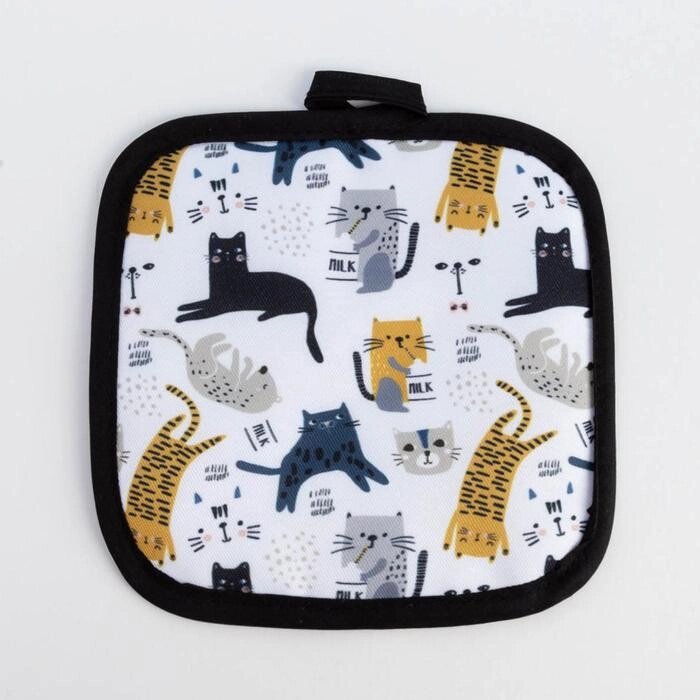 Кухонный набор Доляна «Котики», прихватка 17*17см, рукавица 26*16см, фартук 60*80 см 100% п/э