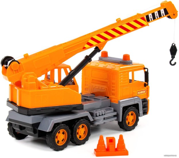 Серия спецтехники «Алмаз» от фабрики «Полесье» включает в себя основные виды авто, которые используются в реальной жизни при промышленных работах. Автомобили имеют реалистичный дизайн и детализированную конструкцию: имеется имитация фар и проблесковых маячков. Кроме того, все машины оснащены инерционным механизмом.Автомобиль-кран «Алмаз» - это интересный вид техники, представленный в данной серии. Игрушка имеет подвижную поворотную платформу, а также выдвижную стрелу с крюковой подвеской, которую можно поднимать и опускать с помощью ручного механизма. Конструкция крана предполагает наличие трёх пар колёс, а в комплекте с игрушкой идут строительные конусы, которые разнообразят и дополнят игру!Серия спецтехники «Алмаз» от фабрики «Полесье» включает в себя основные виды авто, которые используются в реальной жизни при промышленных работах. Автомобили имеют реалистичный дизайн и детализированную конструкцию: имеется имитация фар и проблесковых маячков. Кроме того, все машины оснащены инерционным механизмом.Автомобиль-кран «Алмаз» - это интересный вид техники, представленный в данной серии. Игрушка имеет подвижную поворотную платформу, а также выдвижную стрелу с крюковой подвеской, которую можно поднимать и опускать с помощью ручного механизма. Конструкция крана предполагает наличие трёх пар колёс, а в комплекте с игрушкой идут строительные конусы, которые разнообразят и дополнят игру!