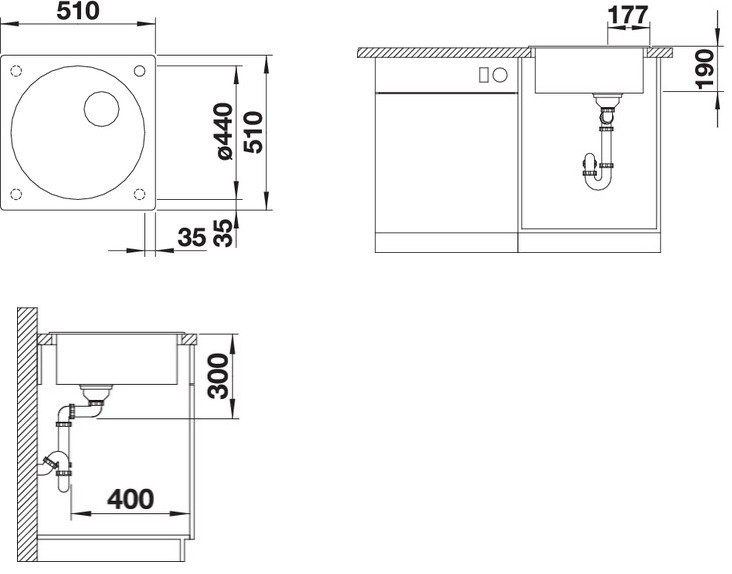 • Размеры врезного отверстия (накладная) 490x490 мм