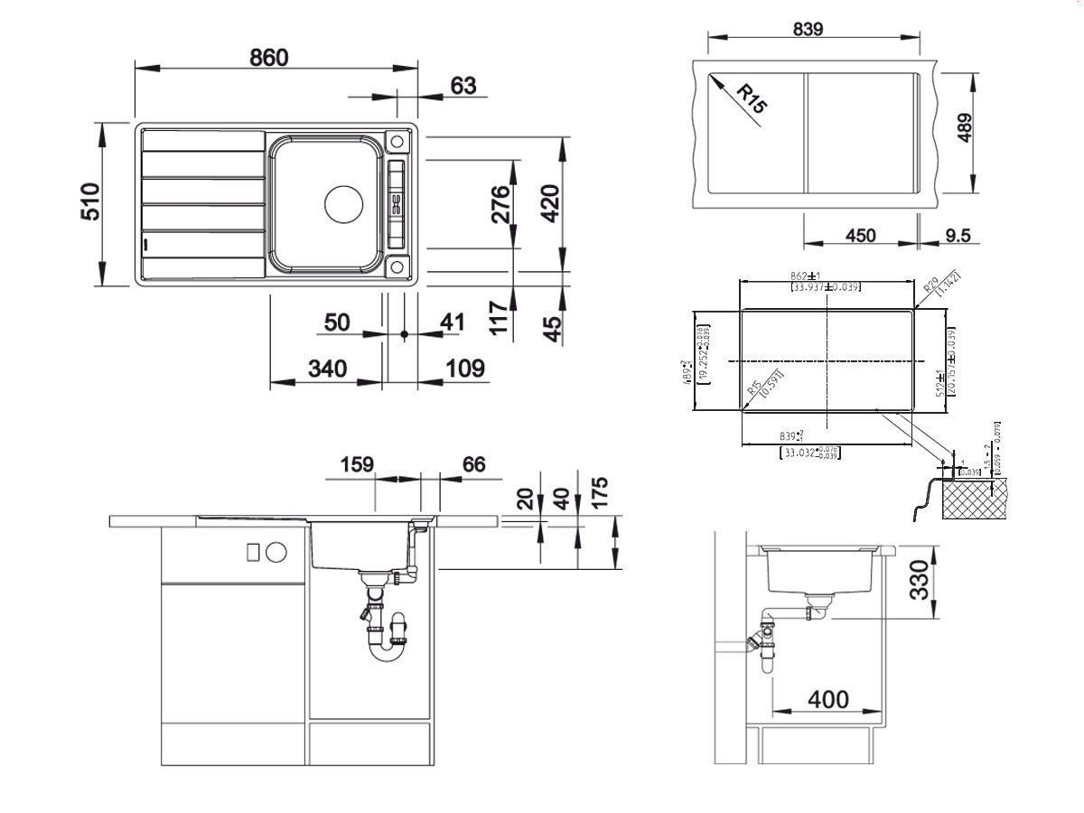 • Размеры врезного отверстия (накладная) 839x489 мм