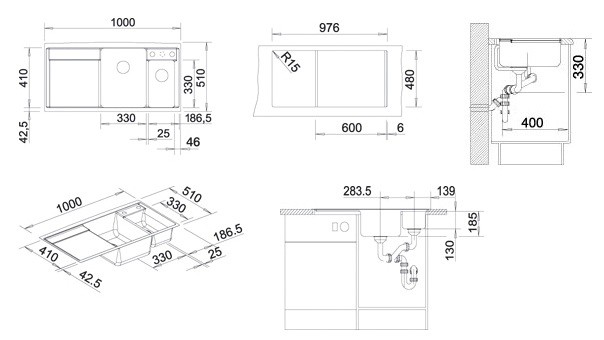 • Размеры врезного отверстия (накладная) 976x480 мм
