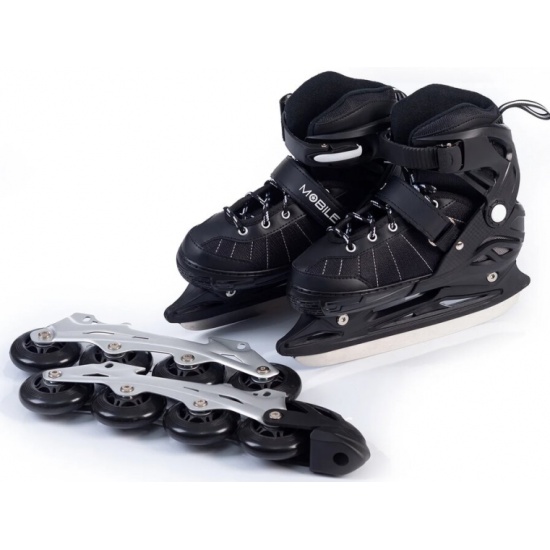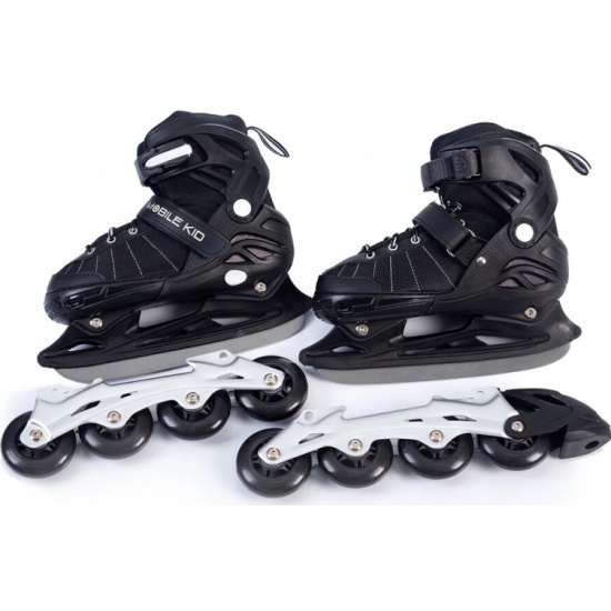Раздвижные коньки-ролики (2 в 1) Mobile Kid UNI SKATE, размер M (31-34), чёрный 4610088640072