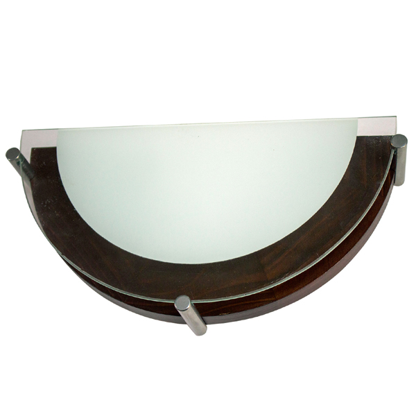 Полесье НББ 06-40 М41 300/2 — настенно-потолочный светильник. Используется для освещения жилых и общественных помещений. Деревянное основание цвета венге легко крепится к стене. Стеклянный плафон мякго рассеивает свет по комнате. Свет излучается лампочкой максимальной мощностью 40 Вт с цоколем Е27.