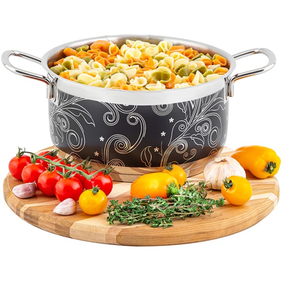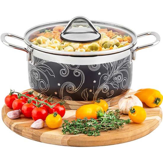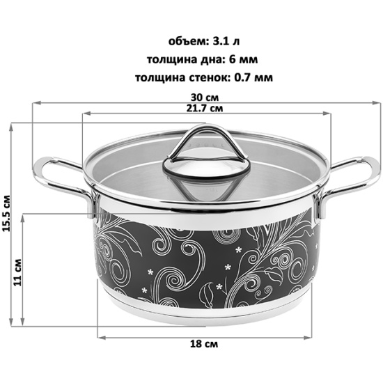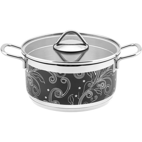 Кастрюля Elan Gallery ГАРМОНИЯ ВКУСА серебро с крышкой, 20 см, 3,1 лКастрюля серии "Гармония вкуса: серебро" объемом 3,1 литра с крышкой станет удобным помощником на кухне при приготовлении супов, каш, рагу, компотов и самых разных блюд. Кастрюля выполнена из высококачественной стали 18/10 и украшена растительными орнаментами falez. Обладает капсулированным дном с алюминиевой прослойкой, благодаря чему быстро и равномерно нагревается. Внутри кастрюли имеется мерная шкала. Ручками кастрюли в процессе приготовления можно пользоваться без прихваток. Кастрюля проста в уходе и сохранит привлекательный внешний вид даже спустя долгое время. Нержавеющая сталь устойчива к появлению царапин и налета, а сильные загрязнения и копоть отмываются без следа. Подходит для использования на любых типах плит, в том числе индукционных. Можно использовать в духовом шкафу без крышки. При использовании на стеклокерамической поверхности всегда поднимайте посуду при перемещении по плите. Поставляется в стильной картонной упаковке. Гарантия 5 лет.