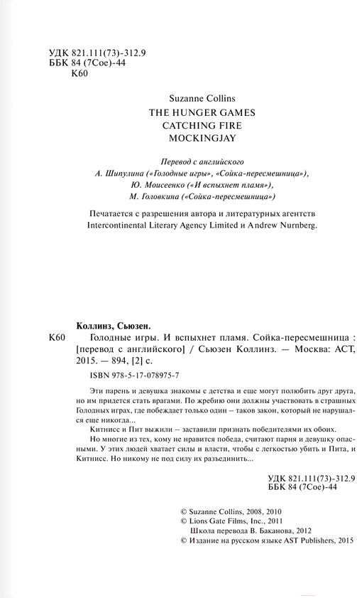 Книга АСТ Голодные игры. И вспыхнет пламя. Сойка-пересмешница (Коллинз С.)