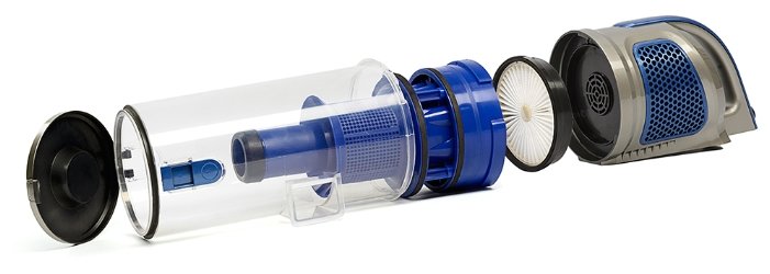 • Пылесборник без мешка (циклонный фильтр), емкостью 2 л