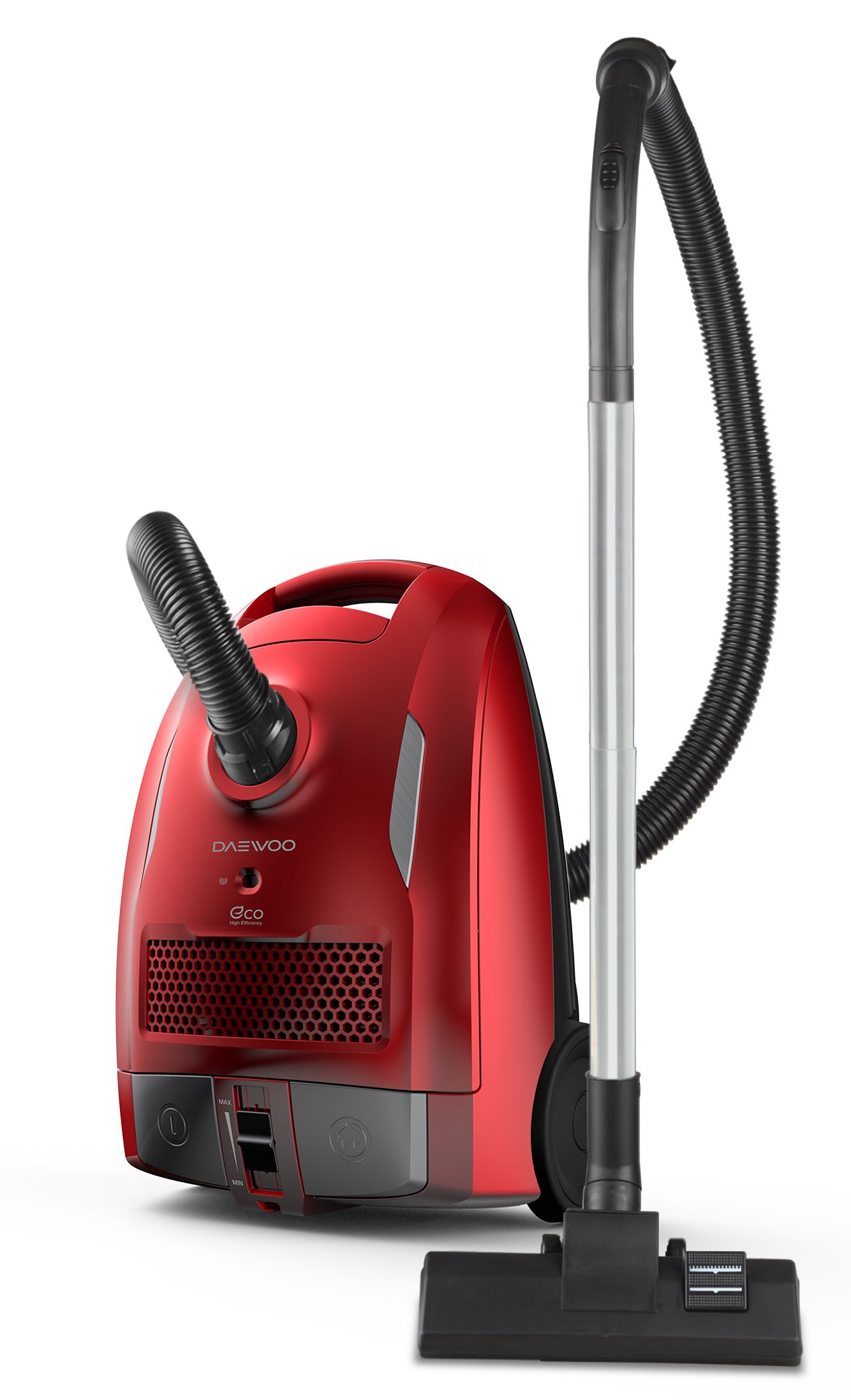Пылесос Daewoo RGH-210R с мешком для сбора пыли обеспечит чистоту вашего дома. Модель представлена в красном цвете.