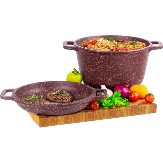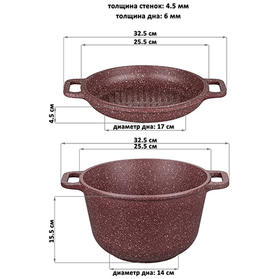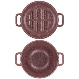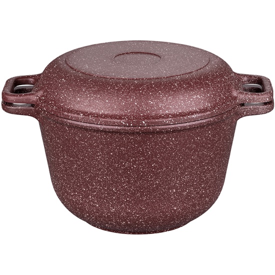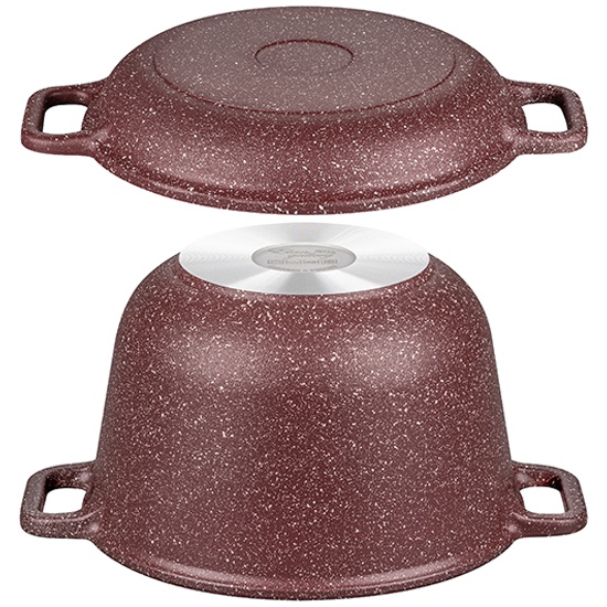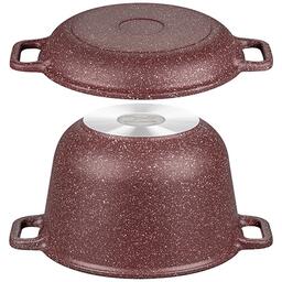 Казан Elan Gallery ГАРМОНИЯ ВКУСА рубин с крышкой, 5 лНабор состоит из казана объемом 5 литров "Гармония вкуса" и крышки, которую можно использовать как сковороду-гриль. Набор изготовлен из литого алюминия в России и имеет ультрапрочное двухслойное антипригарное покрытие. Главное преимущество покрытия - устойчивость к царапинам и износу. Покрытие безопасно для человека и не содержит PFOA или других вредных веществ. Не нагревать без продуктов. Дайте посуде остыть, прежде чем помещать ее в воду. Использовать только деревянные и силиконовые приборы. Не мыть с применением абразивных или щелочных моющих средств. Использовать в посудомоечной машине только в режиме "Эко". Можно использовать в духовом шкафу при температуре до 250 градусов.