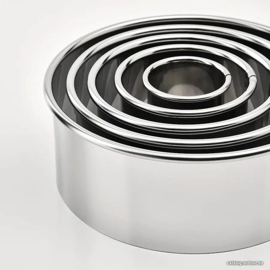 • Состав набора 5 круглых формочек для печенья диаметром 3 см, 5 см, 7 см, 9 см и 11 см