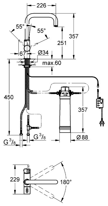 - Дополнительная информация в комплектацию входит сменный фильтр GROHE Blue (600 литров)