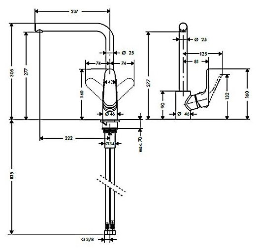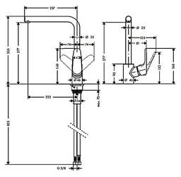 - Излив длина 222 мм, высота 277 мм
