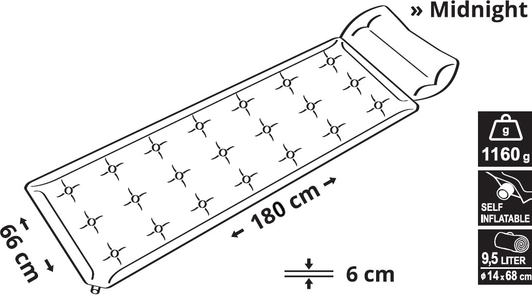 Ковёр для кемпинга Cattara Self-inflatable Midnight, серебристый, 1800x660 мм
