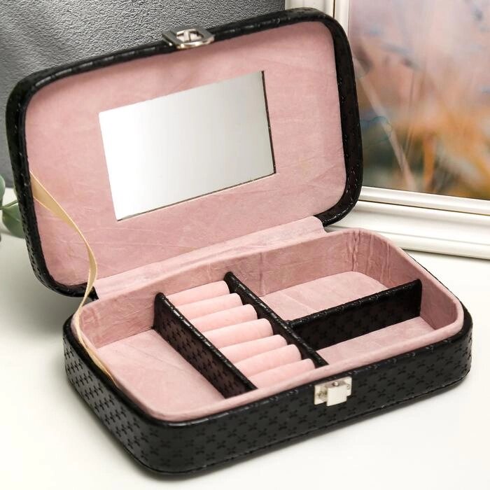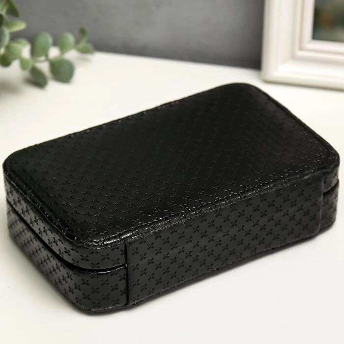 Шкатулка кожзам для украшений "Крестики" чёрная 5х19х12 см
