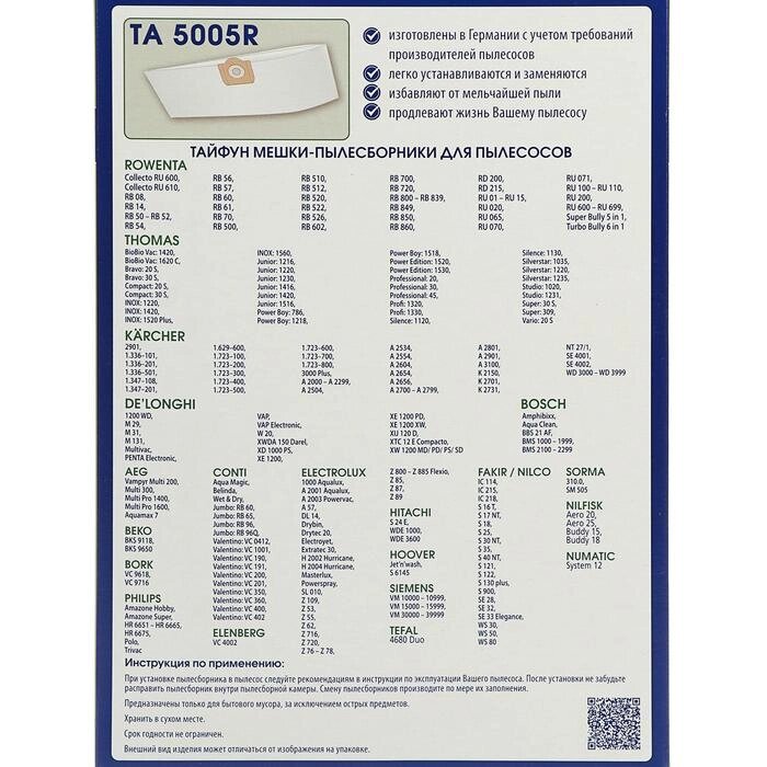 - Совместимая модель Bosch, Kärcher, Rowenta, Thomas