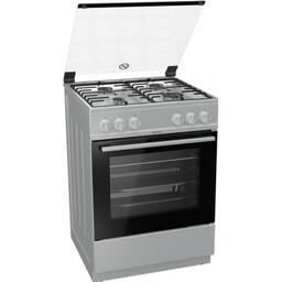 Газовая плита Gorenje GI 6121 XH выполнена в цвете «нержавеющая сталь» и прекрасно дополнит собой любой интерьер. Прибор предусматривает в себе газовые варочную панель и духовой шкаф. 4 конфорки разной мощности позволяют комфортно готовить любые блюда. При помощи поворотных переключателей управлять устройством легко и просто.Уникальная сводчатая форма — одно из главных преимуществ духовок Gorenje. Созданная по образу традиционной дровяной печи, духовка позволяет горячему воздуху свободно циркулировать, равномерно распределяться и полностью обволакивать продукт. Так блюдо нагревается интенсивно и равномерно со всех сторон, получается одновременно сочным и хрустящим.Дайте волю фантазииПочувствуйте себя шеф-поваром! От вас нужна только искра вдохновения, а плита Gorenje с большой варочной поверхностью, мощными горелками и разнообразием функций сделает все остальное. С нашими плитами вы легко порадуете родных и друзей вкусной домашней едой.Суперстойкое и супергладкое покрытиеКачество и тип эмали крайне важны для качества духовки и ее работы. SilverMatte — суперстойкий и высокопрочный материал, способный выдерживать очень высокую температуру. Гладкой, непористой эмалью покрыты внутренние поверхности духовки и противни, что делает их устойчивыми к высокой температуре, микроволнам и пару. Тройное покрытие внутренних поверхностей отражает высокую температуру и обеспечивает дополнительную изоляцию. Активное покрытие позволяет поддерживать чистоту и безопасную среду в духовке.Больше пространства для свободы кулинарного творчестваВ новом поколении духовок Gorenje сводчатый потолок спрятан за передней верхней стенкой, что создает дополнительный объем и позволяет воздуху свободно циркулировать. В духовке Gorenje с полезным объемом 67 литров можно легко приготовить даже семикилограммовую индейку.Справятся с любым количествомВ просторных духовках можно готовить много еды не только благодаря равномерной циркуляции воздуха на всех уровнях, но и благодаря широким 46-сантиметровым противням. Инновационные решения позволили расширить внутреннее пространство и полностью использовать ширину духовки. Противни стали больше, но с инновационными технологиями блюда готовятся равномерно на всех уровнях по всей площади противня.Просто и удобноУдобная функция автоподжига позволяет легко включать газовые горелки — просто нажмите на регулятор конфорки и поверните его до нужной отметки. Быстро и просто!Все тепло — внутриИнновационная конструкция отводного канала в новых плитах Gorenje позволяет жарить на гриле при закрытой дверце. Регуляторы плиты и соседняя мебель не нагреваются, а приготовление идет быстрее и безопаснее.