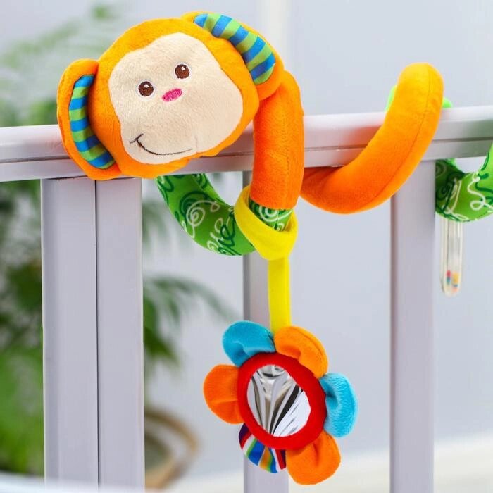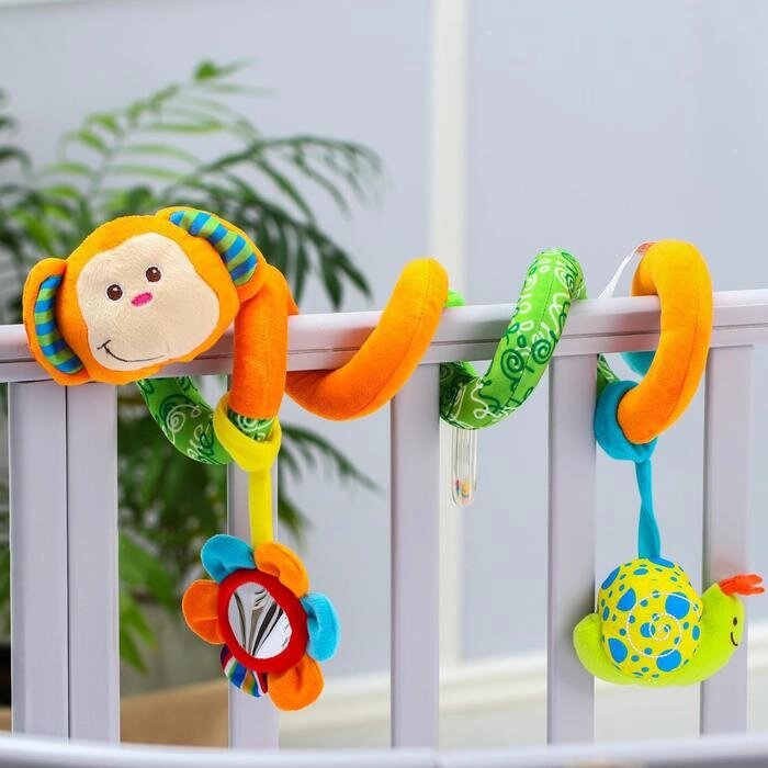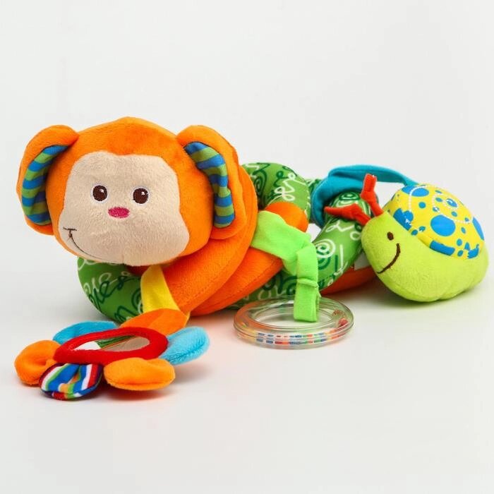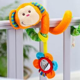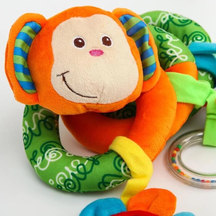 Растяжка - спираль мягкая с погремушкой на кроватку/коляску «Обезьянка»
