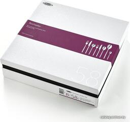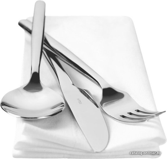 - Состав столового набора вилка столовая, вилка десертная, ложка столовая, ложка чайная, ложка десертная, ложка для сервировки, нож столовый, нож десертный