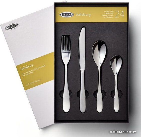 - Состав столового набора вилка столовая, ложка чайная, ложка десертная, нож столовый