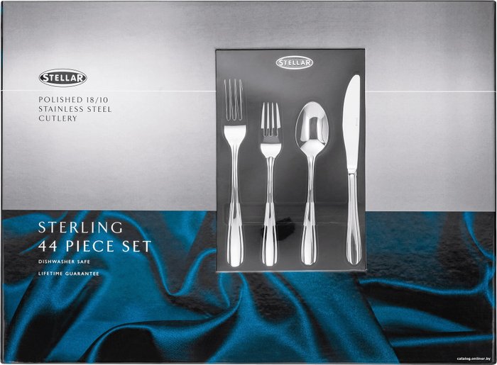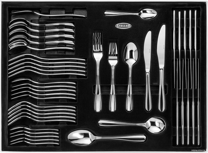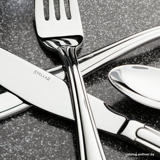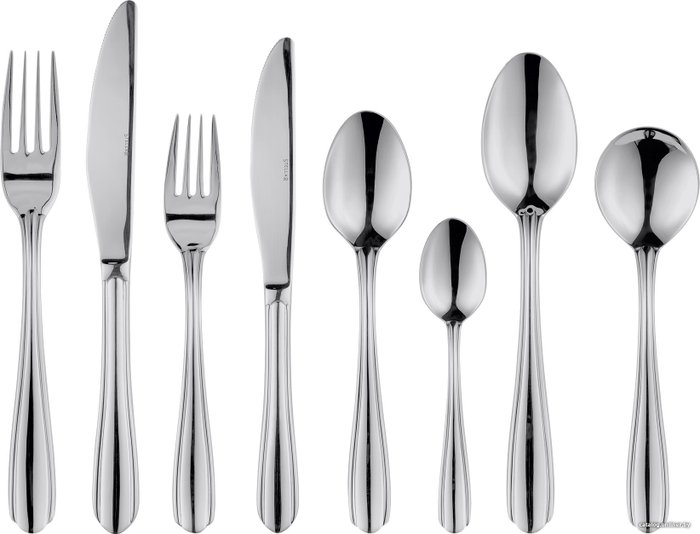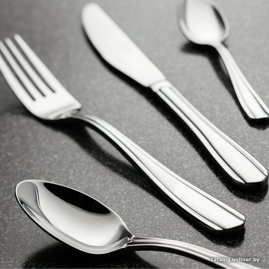 • Состав столового набора вилка столовая, вилка десертная, ложка столовая, ложка чайная, ложка десертная, ложка для сервировки, нож столовый, нож десертный