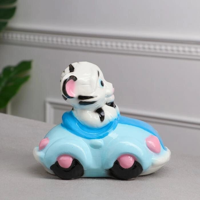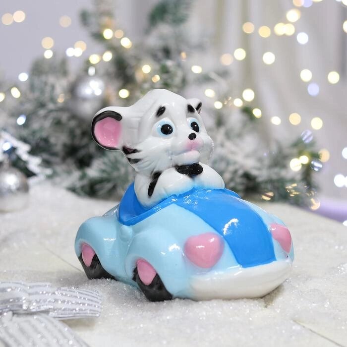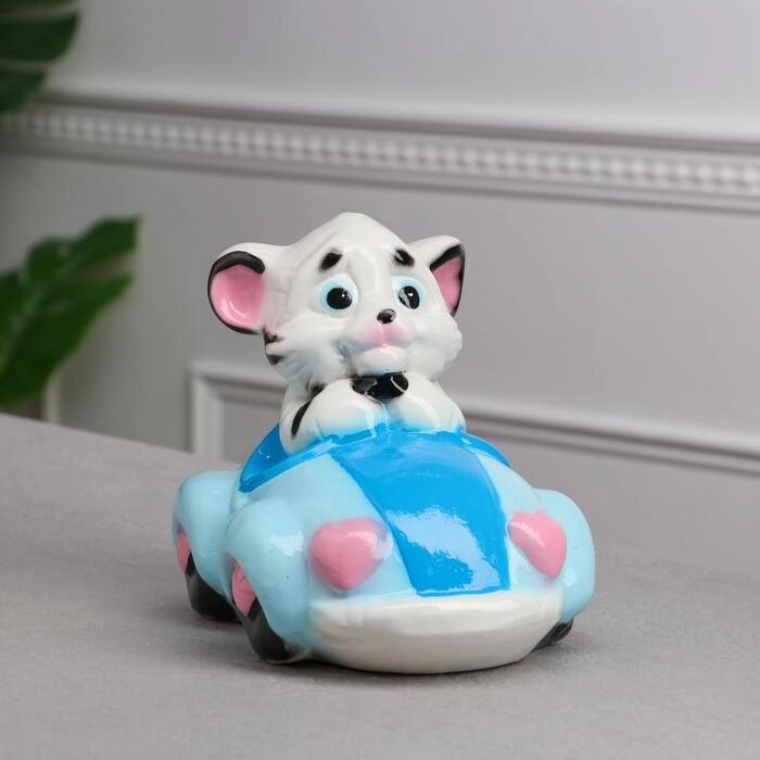 Копилка "Тигрёнок на машинке", символ года 2022, белая, глазурь, керамика, 18 см, микс