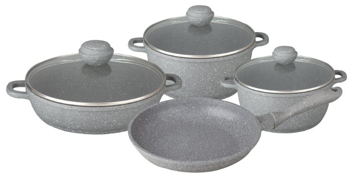 - Состав набора кастрюля, крышка, сотейник, сковорода