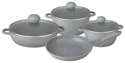 - Дополнительная информация ручки крышек и сковороды бакелитовые с покрытием Soft Touch; диаметр кастрюль: 20 см, 24 см; объем сотейника: 3.7 л; объем сковороды: 2 л