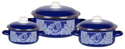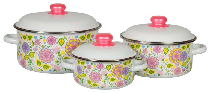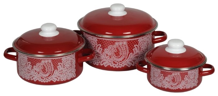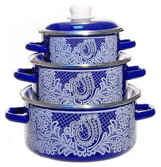 Дополнительная информацияцилиндрические кастрюли с ободком 1.5 л, 3 л, 5 л; высота стенок кастрюль: 80 мм, 105 мм, 125 мм, диаметр кастрюль (по верхнему краю): 180 мм, 215 мм, 255 мм; ширина кастрюль (с учетом ручек): 225 мм, 270 мм, 315 мм