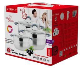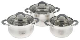 - Дополнительная информация трехслойное термоаккумулирующее дно; эргономичные ручки из хромоникелевой стали на заклепках; диаметр кастрюль: 160 мм, 180 мм, 200 мм; упаковка – подарочная коробка с пластиковой ручкой