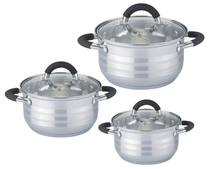 - Подробная комплектация кастрюли: 1.9 л, 3.9 л, 6.1 л; 3 крышки