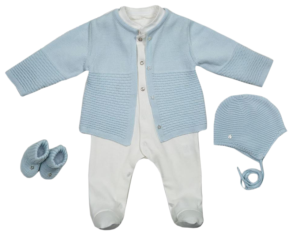 - Комплектация комбинезон; кардиган; пинетки; шапка