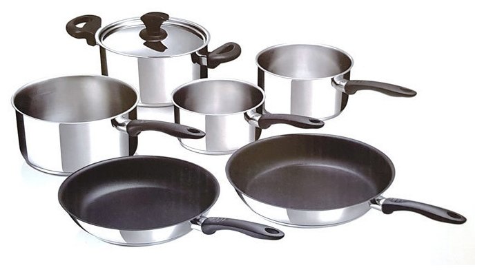 - Состав набора кастрюля, крышка, ковш, сковорода