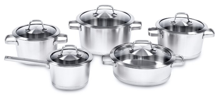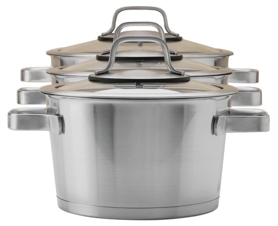 Дополнительная информациятрехслойное дно; сатиновая внутренняя и внешняя отделка; диаметр ковша: 16 см; диаметр кастрюль: 18 см, 20 см, 24 см; сотейник с двумя ручками: 3 л
