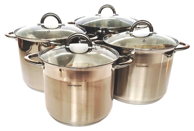 - Подробная комплектация кастрюли: 7.5 л, 9.5 л, 12 л, 14.2 л; 4 крышки