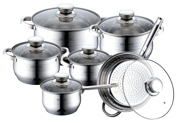 - Состав набора кастрюля, крышка, сотейник, ковш